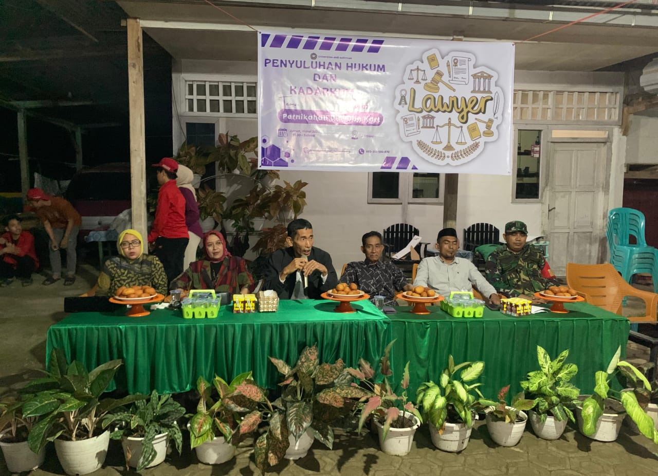 Di bawah bimbingan Dosen Pembimbing Lapangan (DPL) Suriyati, SH., MH, dan Rika Damayanti, SH., MH, serta Ketua P2 KKN Drs. Muh. Bakri, MH, mahasiswa KKN Uniasman mendatangkan pemateri penyuluhan hukum Drs. A. Amrullah Zubair, SH., MH, seorang praktisi hukum yang berpengalaman.