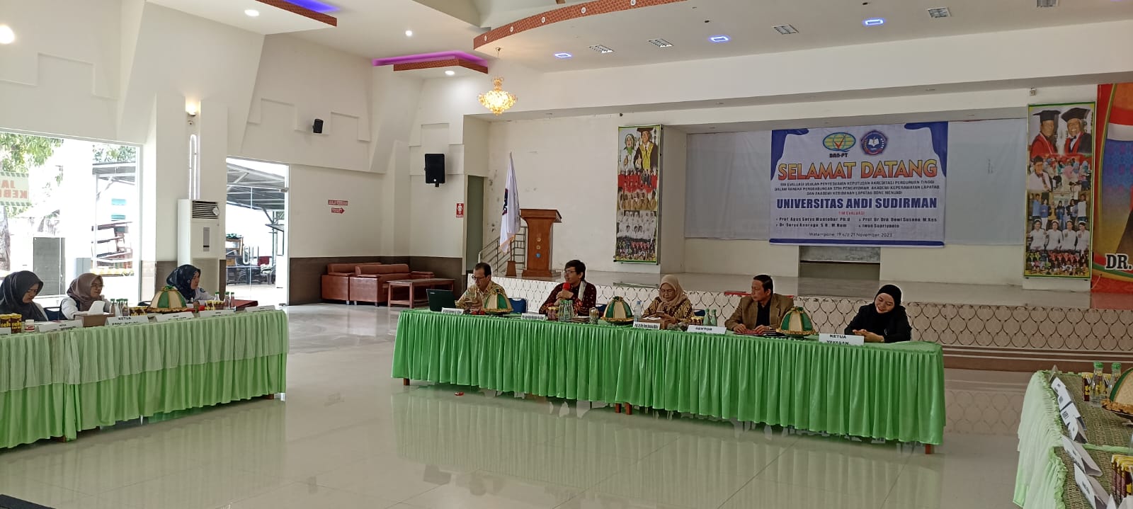 BONE–Badan Akreditasi Nasional Perguruan Tinggi (BAN-PT) melakukan evaluasi terhadap usulan penyesuaian keputusan akreditasi Perguruan Tinggi dalam rangka penggabungan STIH Pengayoman, Akademi Keperawatan Lapatau, dan Akademi Kebidanan Lapatau Bone menjadi Universitas Andi Sudirman, Senin, 20 November 2023. Tim evaluasi BAN-PT yang terlibat dalam proses tersebut mencakup Prof. Agus Setyo Muntohar, Ph.D, Dr. Surya Anoraga, SH, MHum, Prof. Dr. Dra. Dewi Susana, M.Kes, dan Iwan Supriyanto.