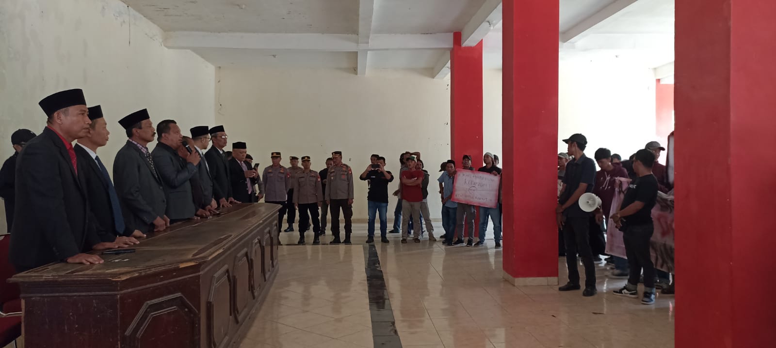 “Saat ini, masyarakat terombang ambing, kami minta petunjuk dan penyelesaian dari masalah ini. Persoalan ini mulai dipersoalkan sejak tahun 2019 namun belum menemukan titik terang. Dimulai kita tidak diperkenankan hak atas tanah. Baik hak milik, maupun hak guna,” ungkap Suryadi Mustapa.